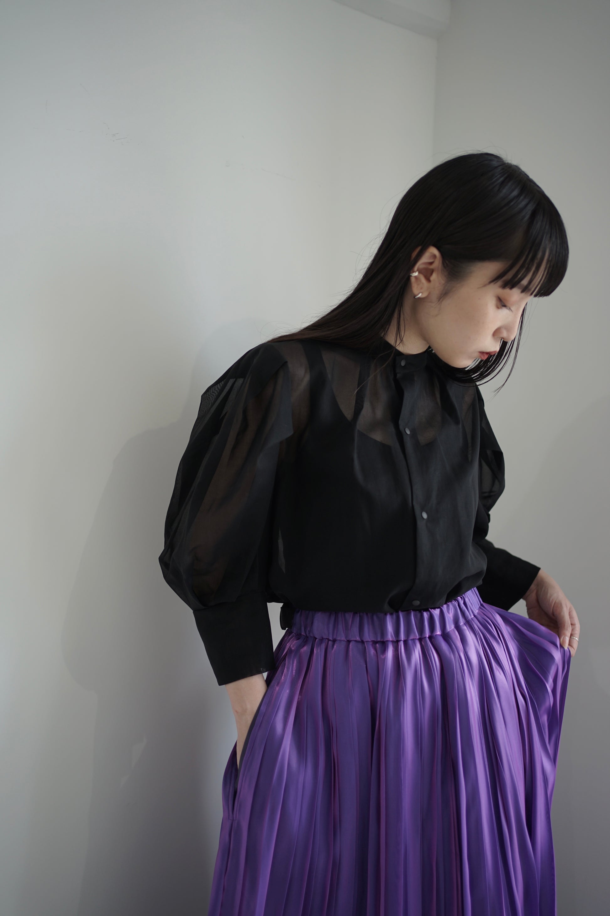 度々議論を生むポケット有無の問題は、このプリーツスカートを着用していただく際に思考の邪魔になります。高揚感を妨げることのないようitochiのプリーツスカートは左右ポケットは標準搭載です。