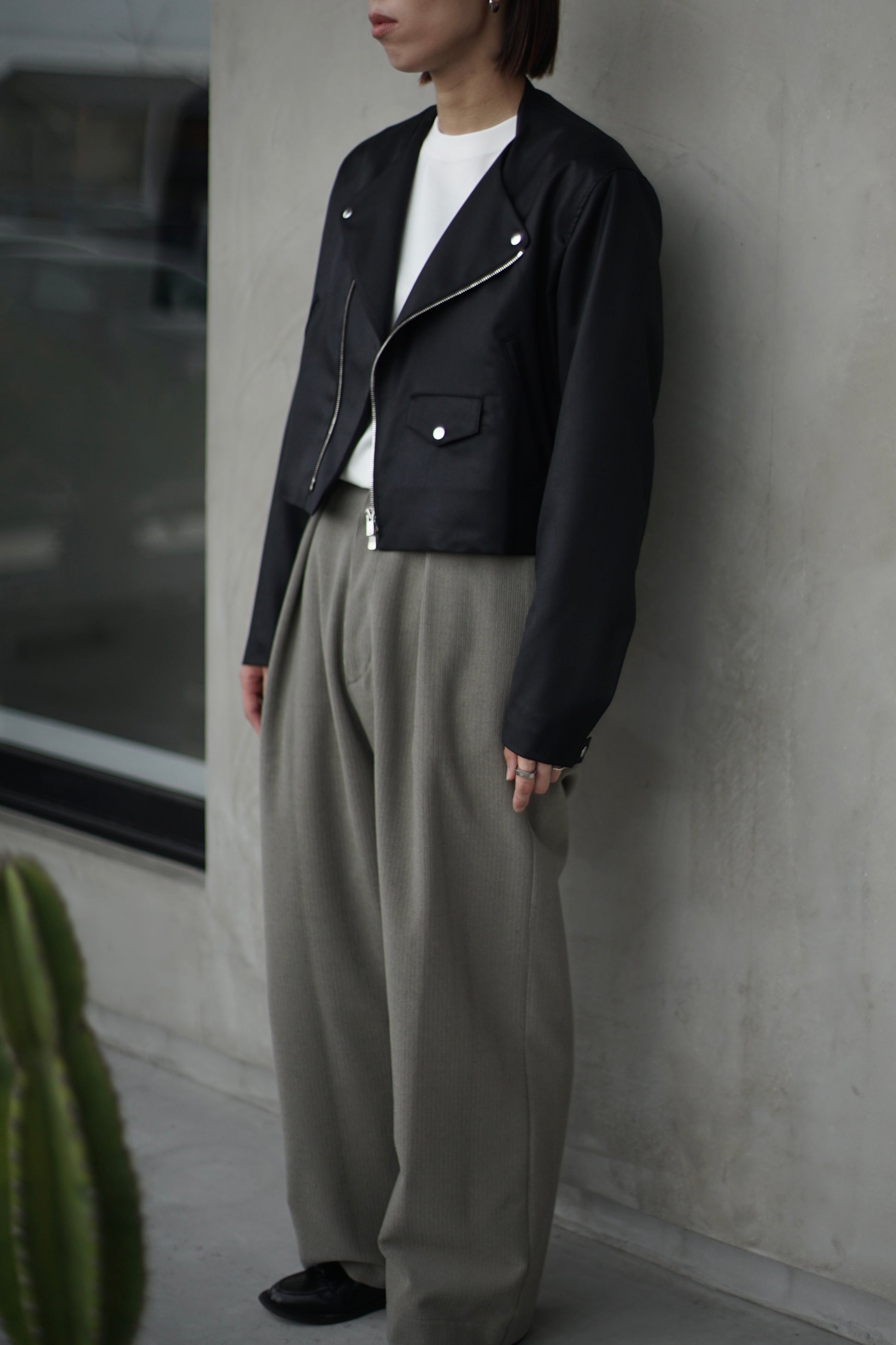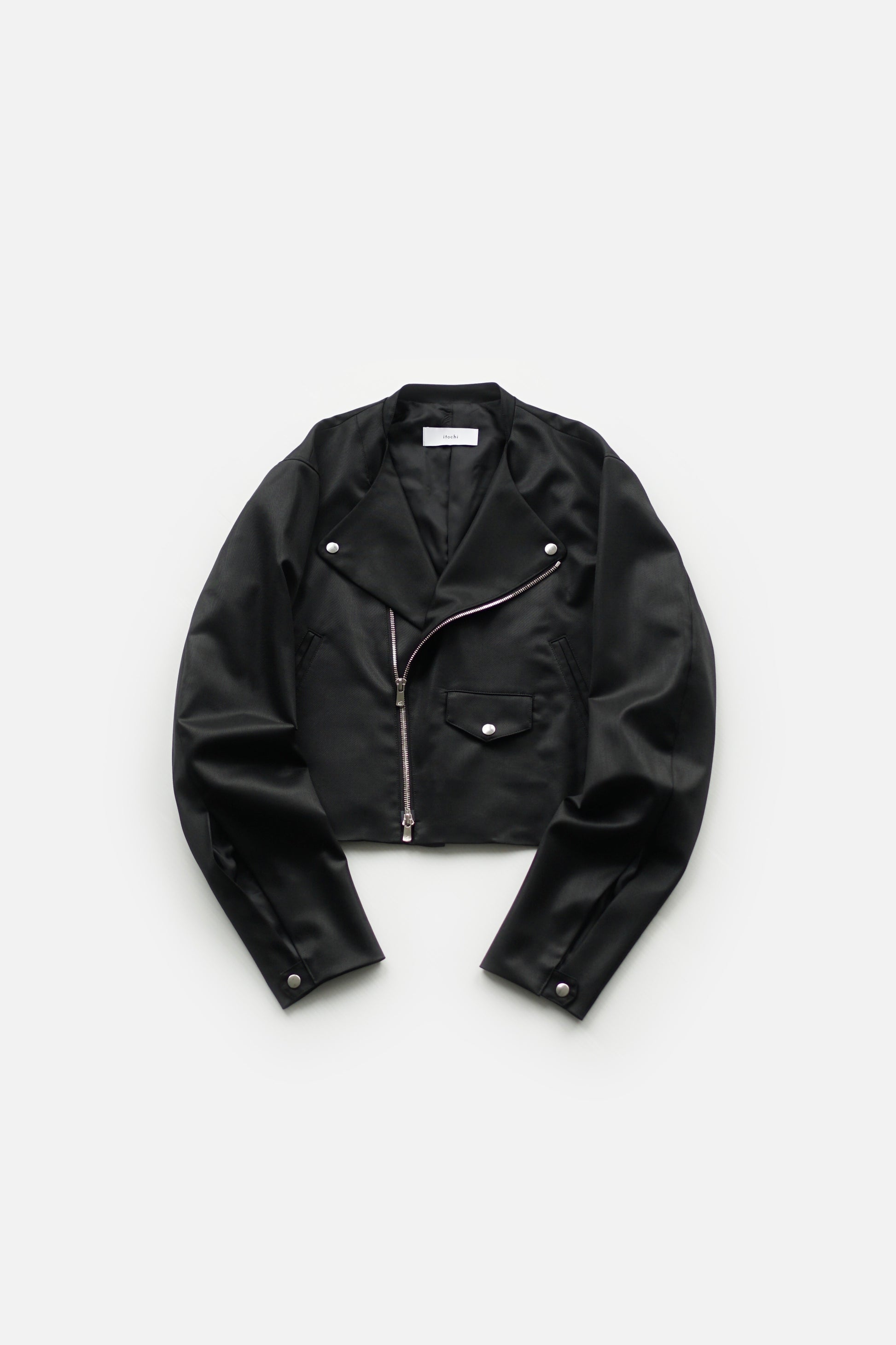 上衿やベルトなどのディテールを省略、「ライダースジャケットである」と認識する限界までミニマルにし、その生地に注視してしまうようなバランスで構築しました。
