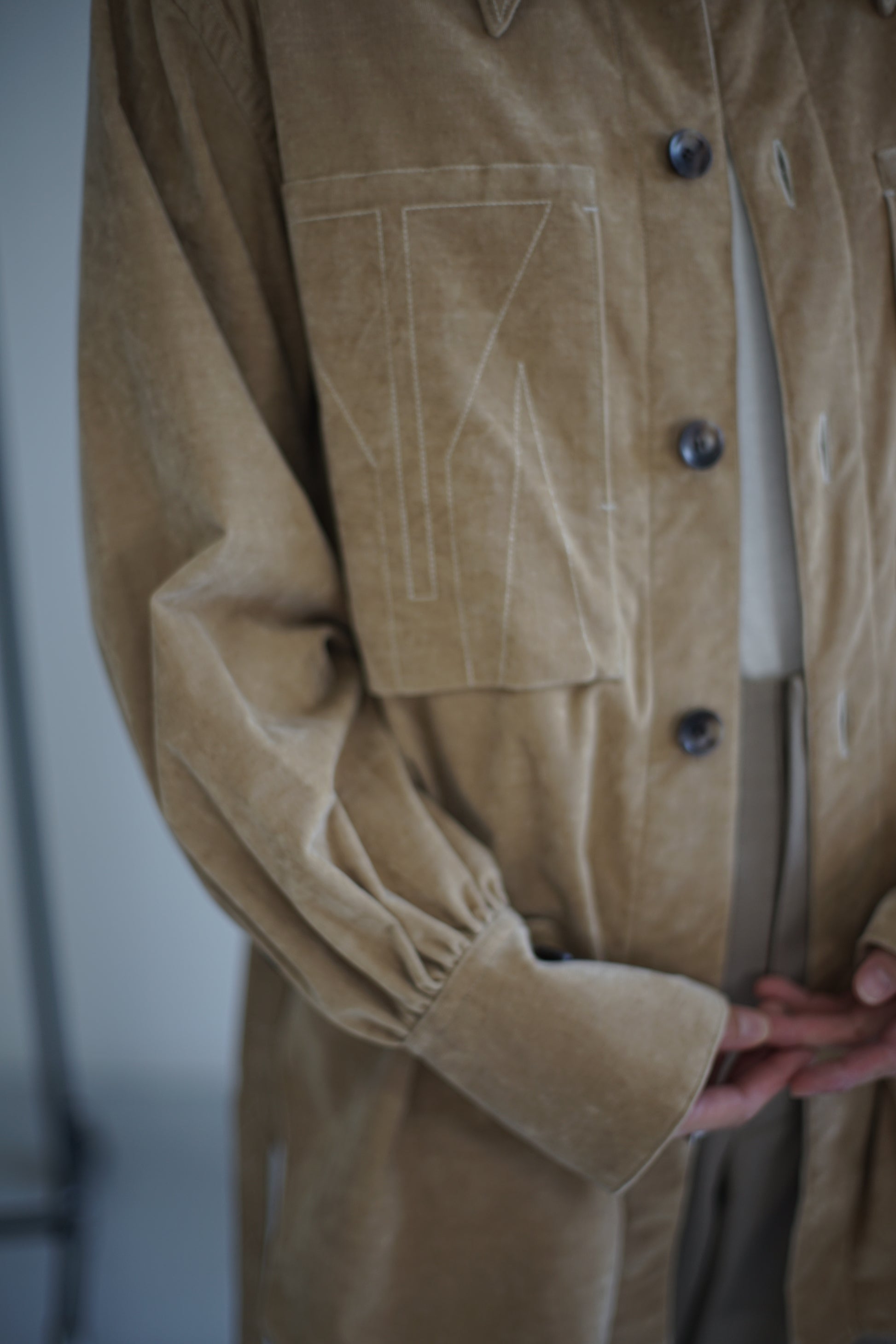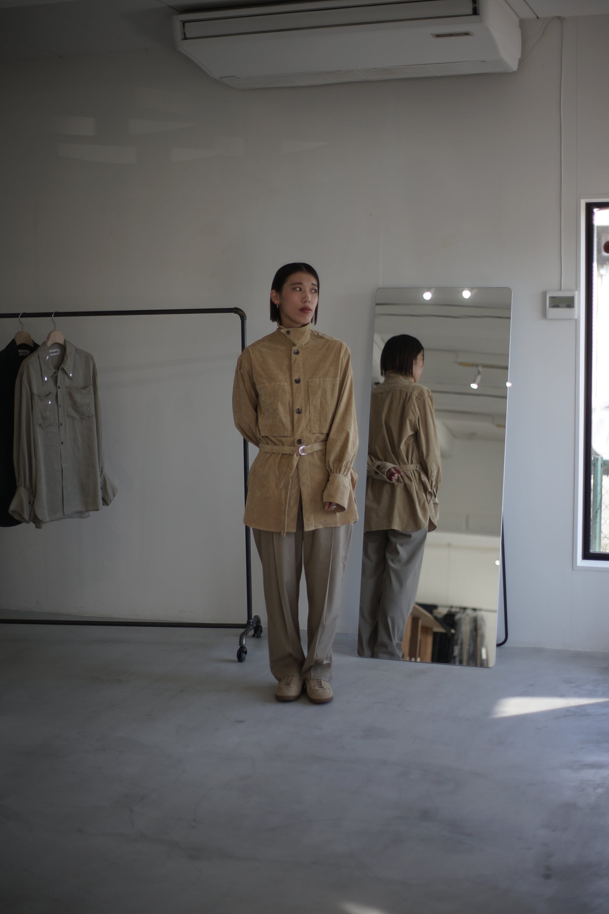 通常ジャケットを作るような厚手生地をシャツデザインに落とし込むすることで、ジャケットのかっこよさとシャツのラフさを合わせました。ステッチワークのカジュアルな要素に光沢としなやかさが合わさり、佇まいを上品にした力強いデザインに仕上がりました。